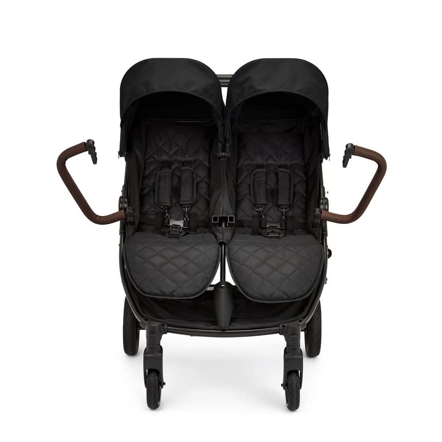 SHOPPULSE Venus Prime Doppelkinderwagen - geeignet von Geburt bis 15 kg (ca. 3 Jahre), leichter, faltbarer Zwillingskinderwagen mit Neugeborenenkokon, 2 Fußwärmern und Regenschutz (Schwarz)