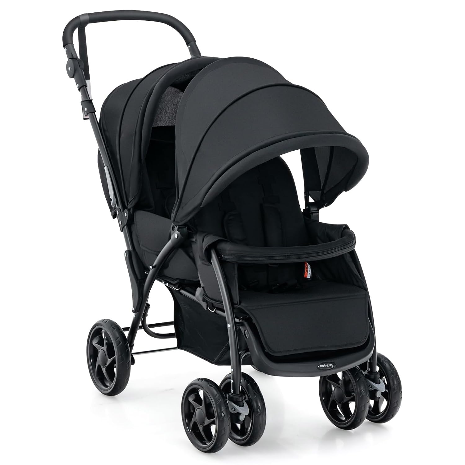 SHOPPULSE Geschwisterwagen mit verstellbare Dach & Ablagekorb Zusammenklappbar Kinderwagen Dunkelgrau Stahl
