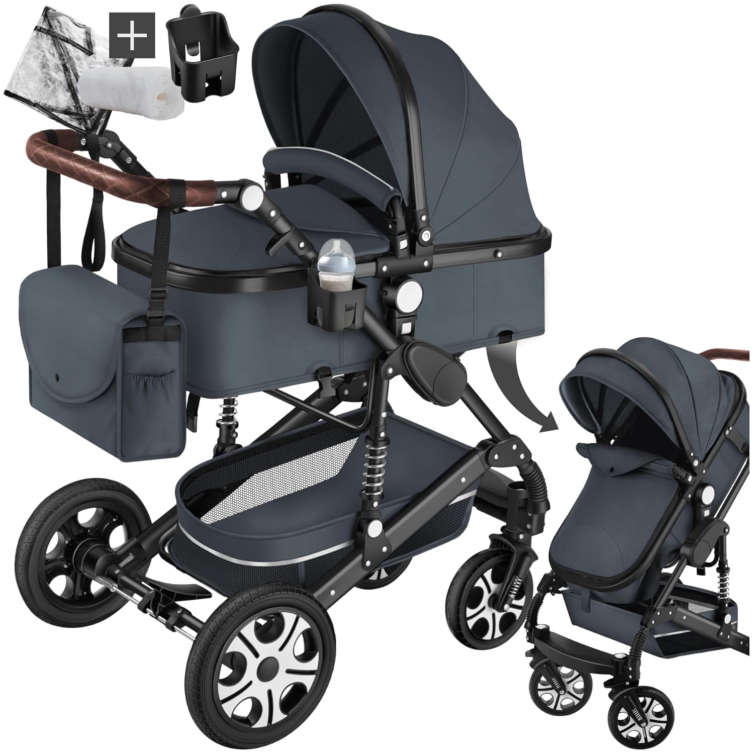 SHOPPULSE 3-in-1 Kinderwagen KombiKinderwagen-Set 2-in-1 Buggy faltbar Luxus Hochlandschaft Neugeborenes Tragbarer Kinderwagen Zusammenklappbarer Kinderwagen Kinderwagen Travel System (D2-DEEPGREY)