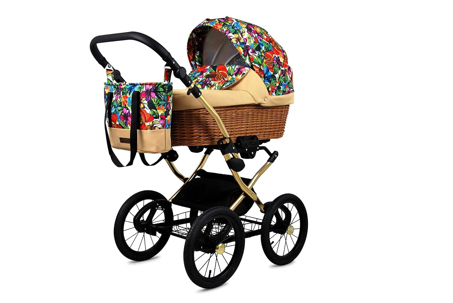 SHOPPULSE Kinderwagen 3in1 mit Autositz für Kleinkinder – Kinderwagen für Neugeborene und Kleinkinder –– Baby Neugeborenen Kinderwagen – 59x105x125cm – Max 15kg – Jungle Flowers Gold Frame