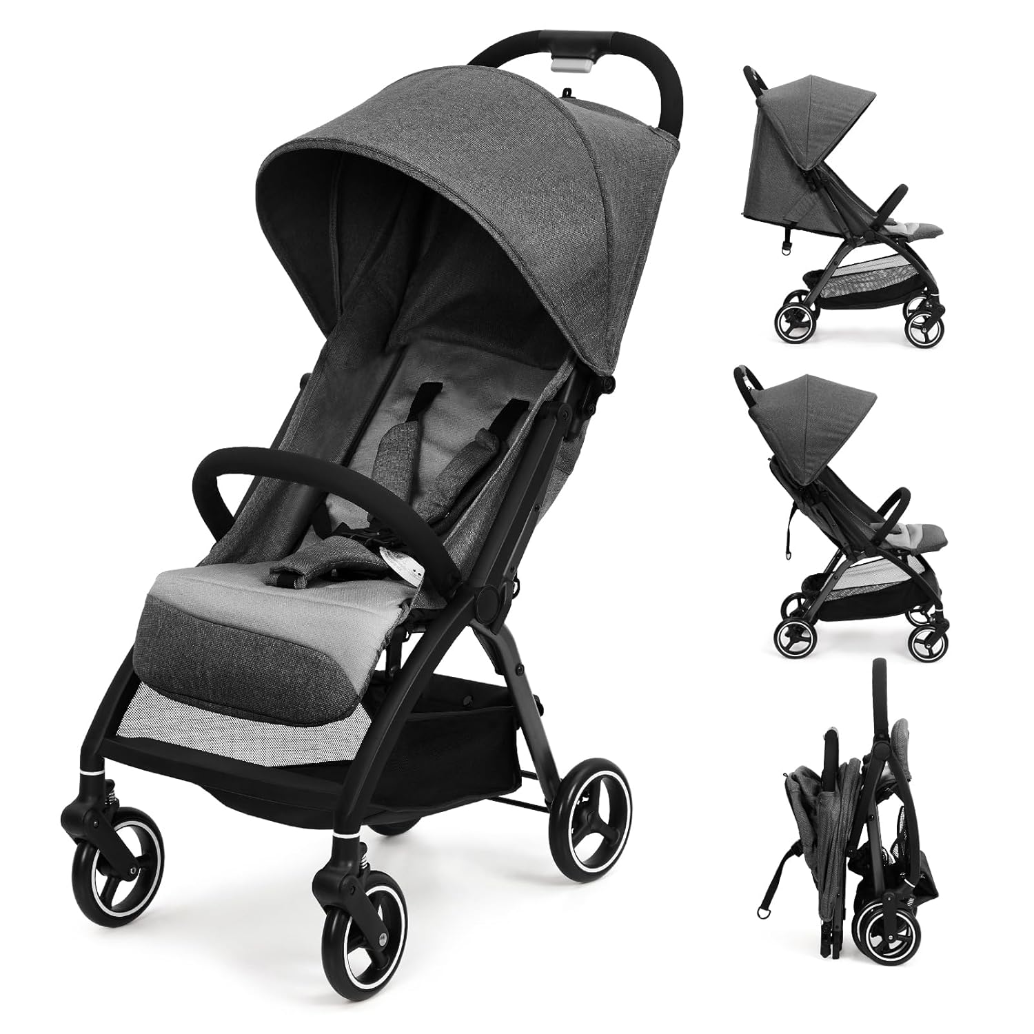 SHOPPULSE Zusammenklappbarer Kinderwagen, Regenschirm-Kinderwagen mit Baldachin, Universalrad-Kinderbuggy-Reisekinderwagen für Park-, Ausflugs- und Flugreisen