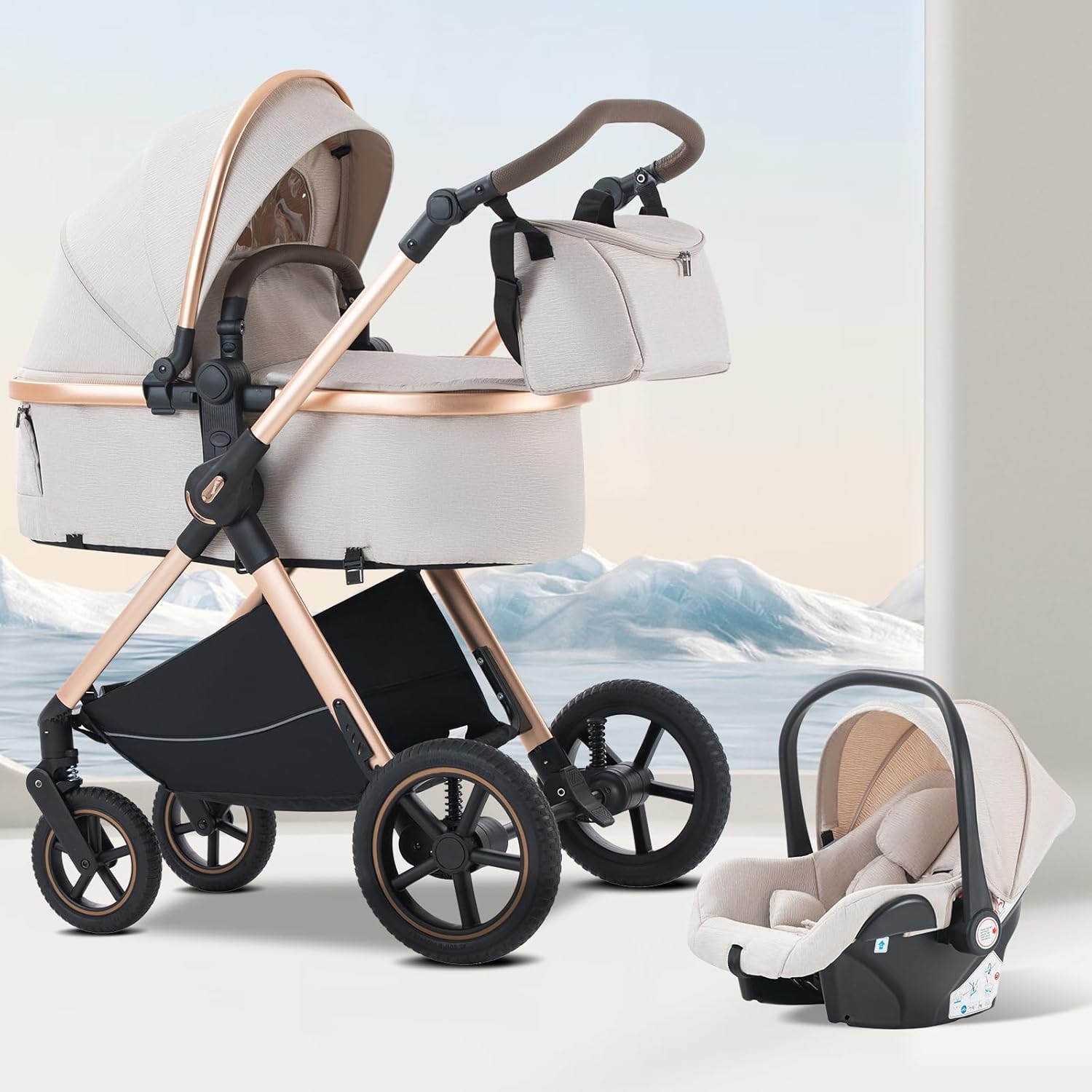 • 【2】Der Autositz lässt sich mithilfe des Autositz-Klicksystems einfach auf dem Gestell des Kinderwagens anbringen. Durch Verstellen des Winkels der Armlehne kann der Autositz transportiert werden, um das Baby nicht zu wecken.Der Autositz ist für Babys von 0 bis 15 Monaten geeignet und entspricht der europäischen Vorschrift ECE R129. Der Autositz kann als Wiege verwendet werden, wenn er auf eine ebene Fläche gestellt wird, um Ihr Baby sanft in den Schlaf zu schaukeln.