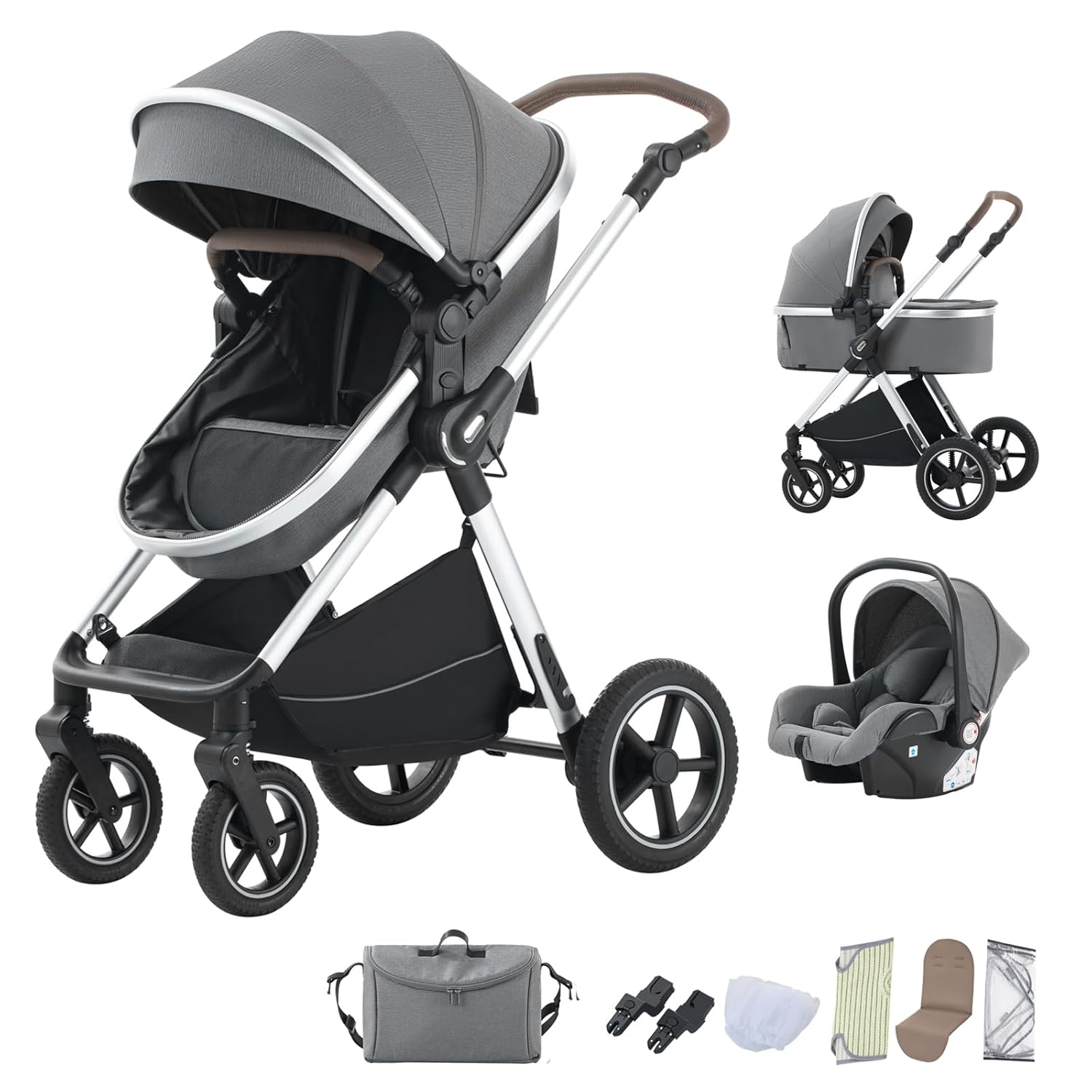 SHOPPULSE 3-in-1 Kinderwagen KombiKinderwagen-Set 2-in-1 Buggy faltbar Luxus Hochlandschaft Neugeborenes Tragbarer Kinderwagen Zusammenklappbarer Kinderwagen Kinderwagen Travel System (D2-DEEPGREY)