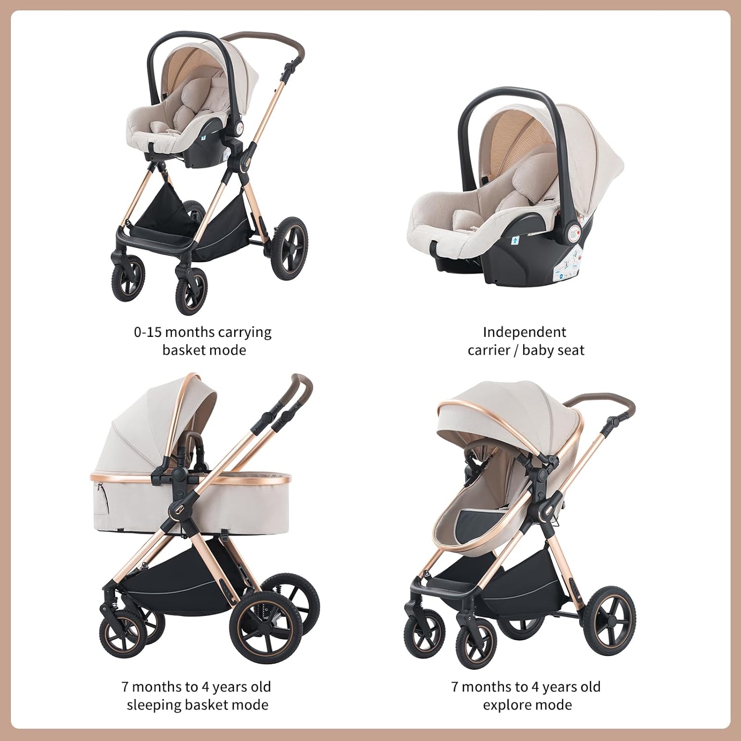 SHOPPULSE 3-in-1 Kinderwagen KombiKinderwagen-Set 2-in-1 Buggy faltbar Luxus Hochlandschaft Neugeborenes Tragbarer Kinderwagen Zusammenklappbarer Kinderwagen Kinderwagen Travel System (D2-LIGHT BROWN)