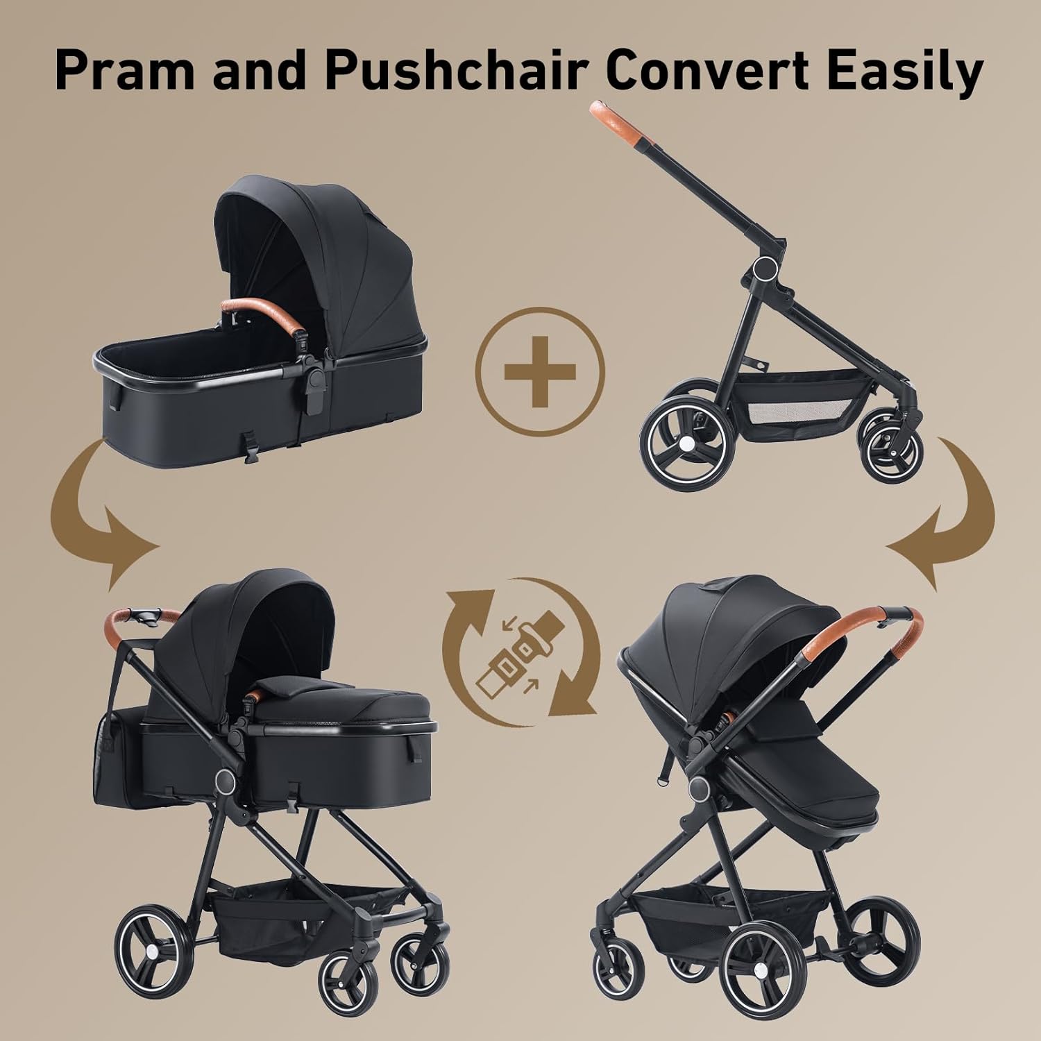 SHOPPULSE 3-in-1-Kinderwagen, tragbar, mit Autositz, 3 Modi, umwandelbar, Gestell aus hochwertigem Aluminium, hohe Sicht, leichter Kinderwagen