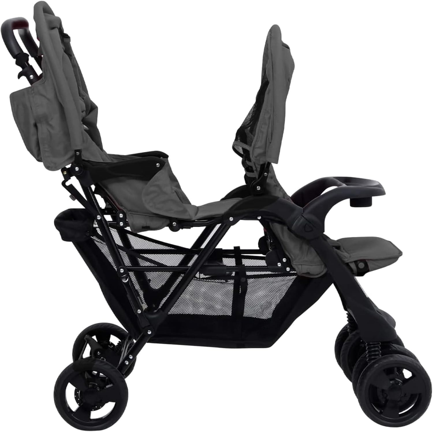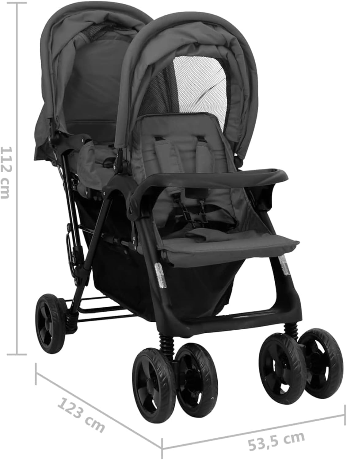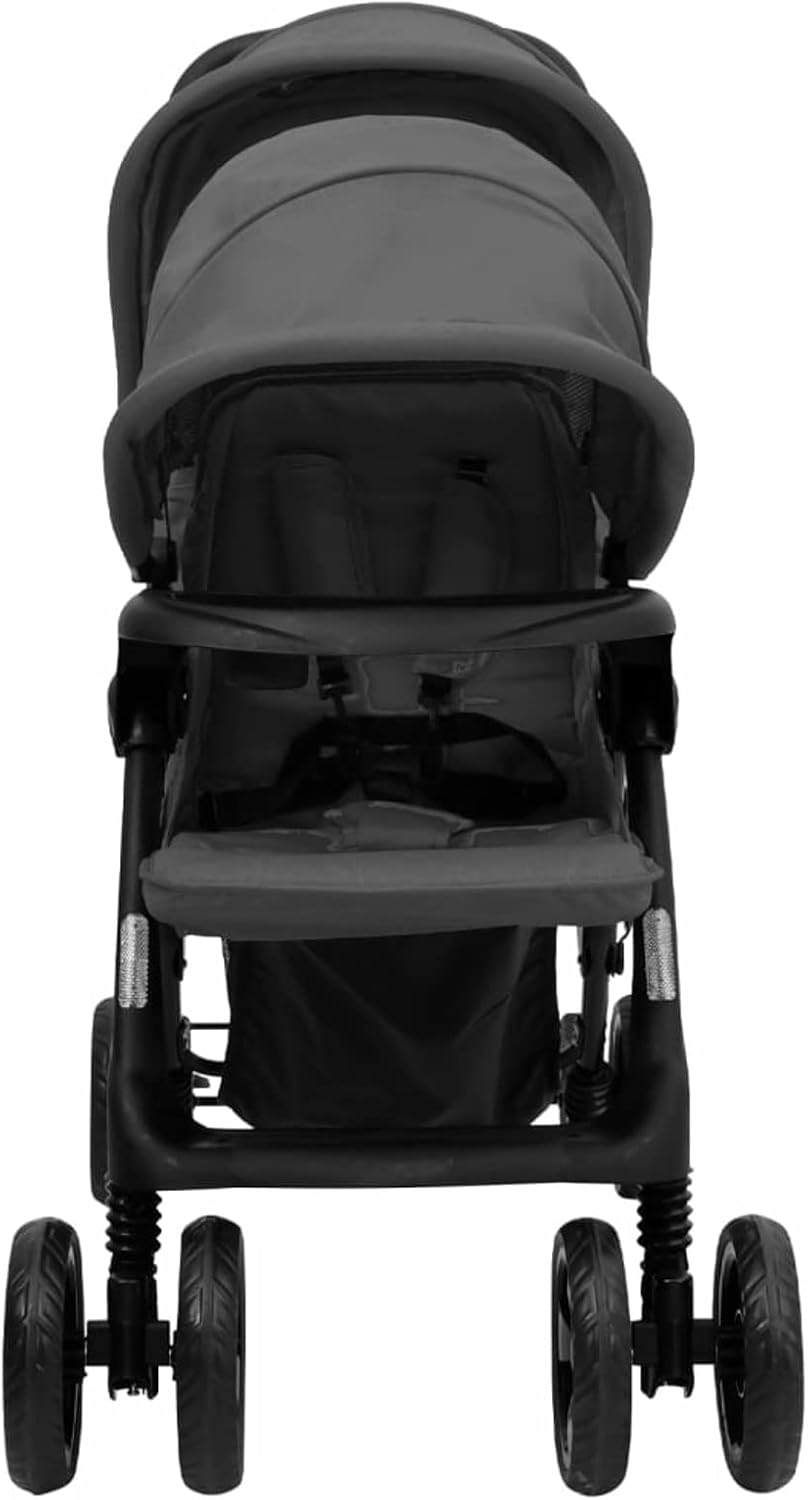 SHOPPULSE Geschwisterwagen mit verstellbare Dach & Ablagekorb Zusammenklappbar Kinderwagen Dunkelgrau Stahl