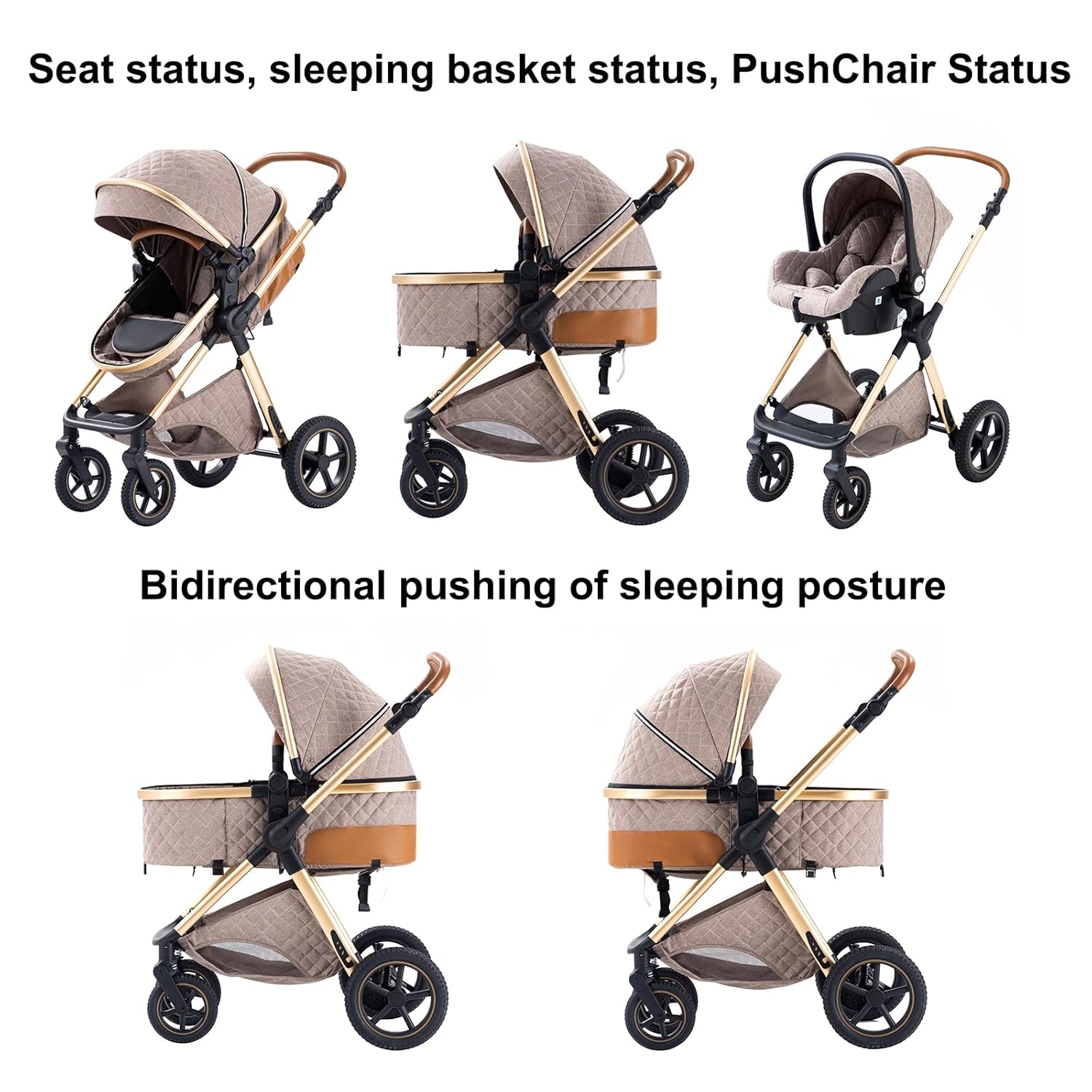 【1】Der Kinderwagen hat ein verstellbares Fünf-Punkt-Gurtzeug. Die Babywanne ist für 0-15 Monate geeignet und kann in einen Kinderwagen für Babys umgewandelt werden, der für 7-36 Monate geeignet ist. was für Babys beim Ein- und Aussteigen praktisch